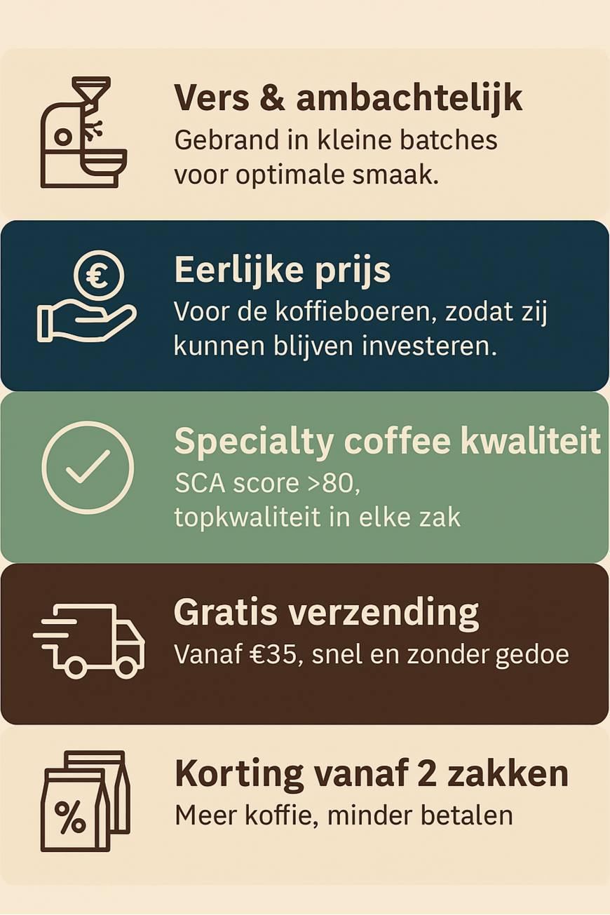 Het is fascinerend hoeveel stappen er nodig zijn, voordat jij je verse kopje koffie in de ochtend drinkt. Iedere stap in de keten is belangrijk en bepaalt uiteindelijk de smaak van de koffie. We nemen je graag mee in vogelvlucht hier beneden: