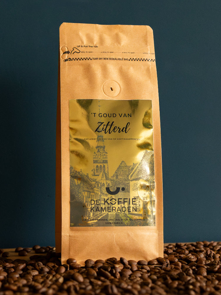 Proef ’t Goud van Zitterd, een unieke koffie met roots in Sittard, de thuisbasis van De Koffiekameraden. Met zorg gebrand in kleine batches, weerspiegelt deze blend de warmte en authenticiteit van onze stad. Een ware traktatie voor koffieliefhebbers, rechtstreeks uit het hart van Sittard naar jouw kopje!